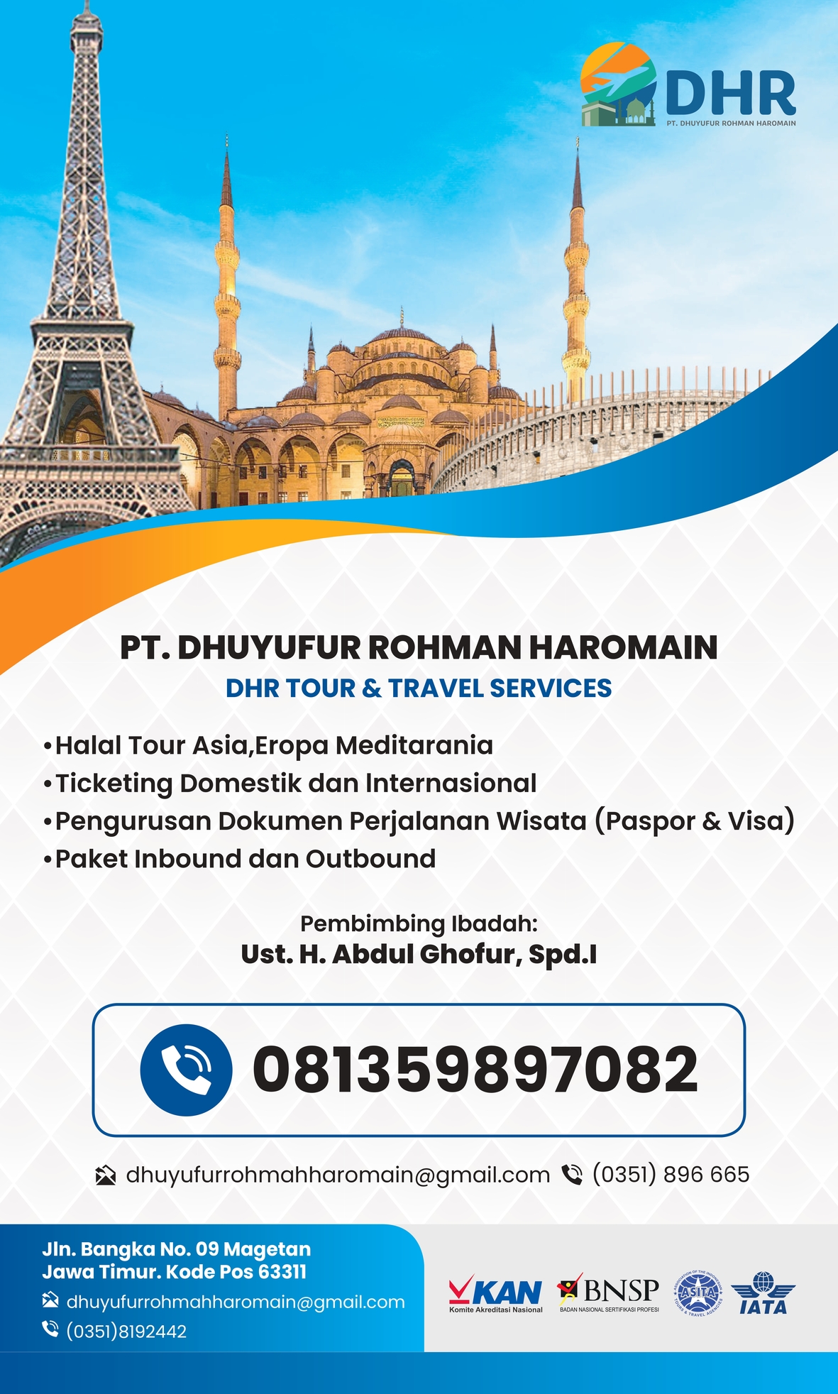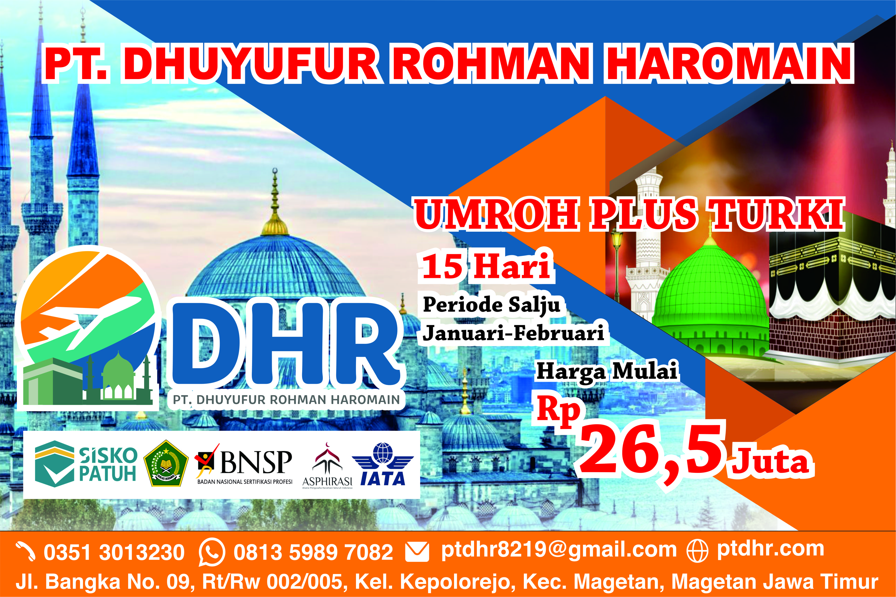 Pt Dhuyufur Rohman Haromain adalah Travel Tour Umrah yang sudah Berizin serta Terpercaya Melayani dengan harga Terjangkau dan Program Berkualistas. Dan juga Travel Umrah kami Insya Allah sesuai dengan Al-Qra'an dan As-Sunnah.